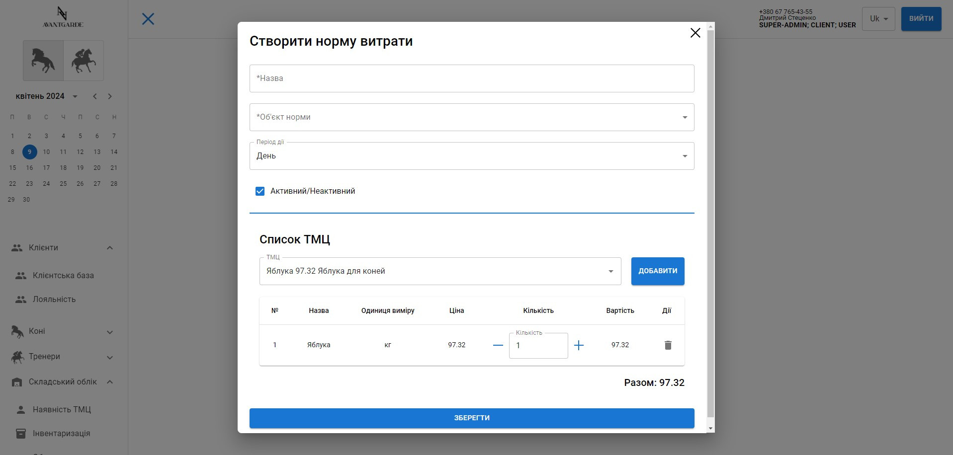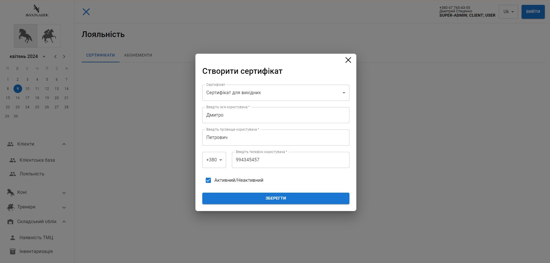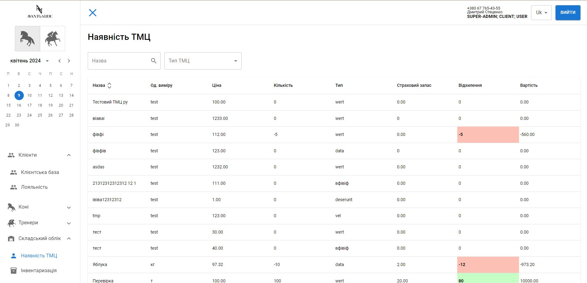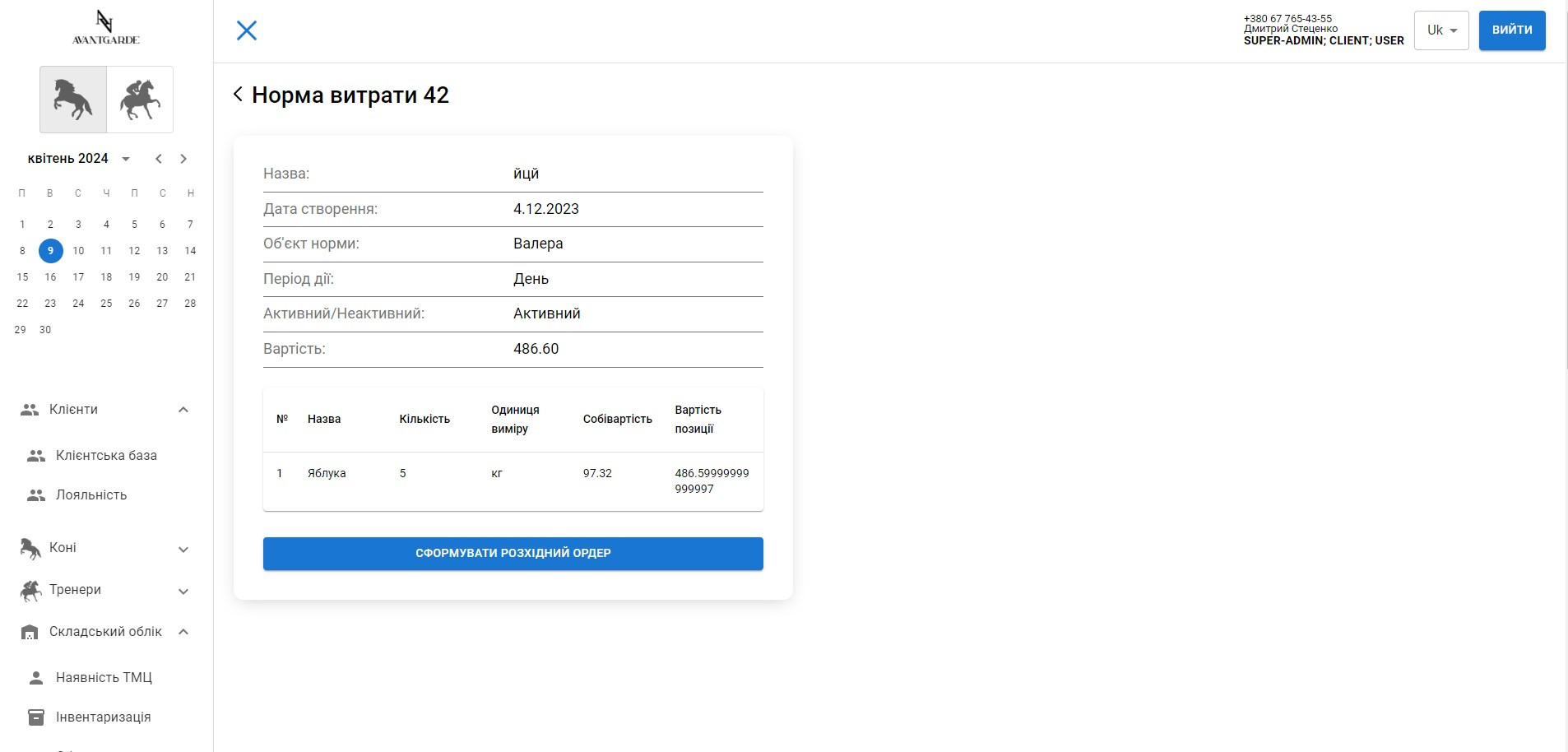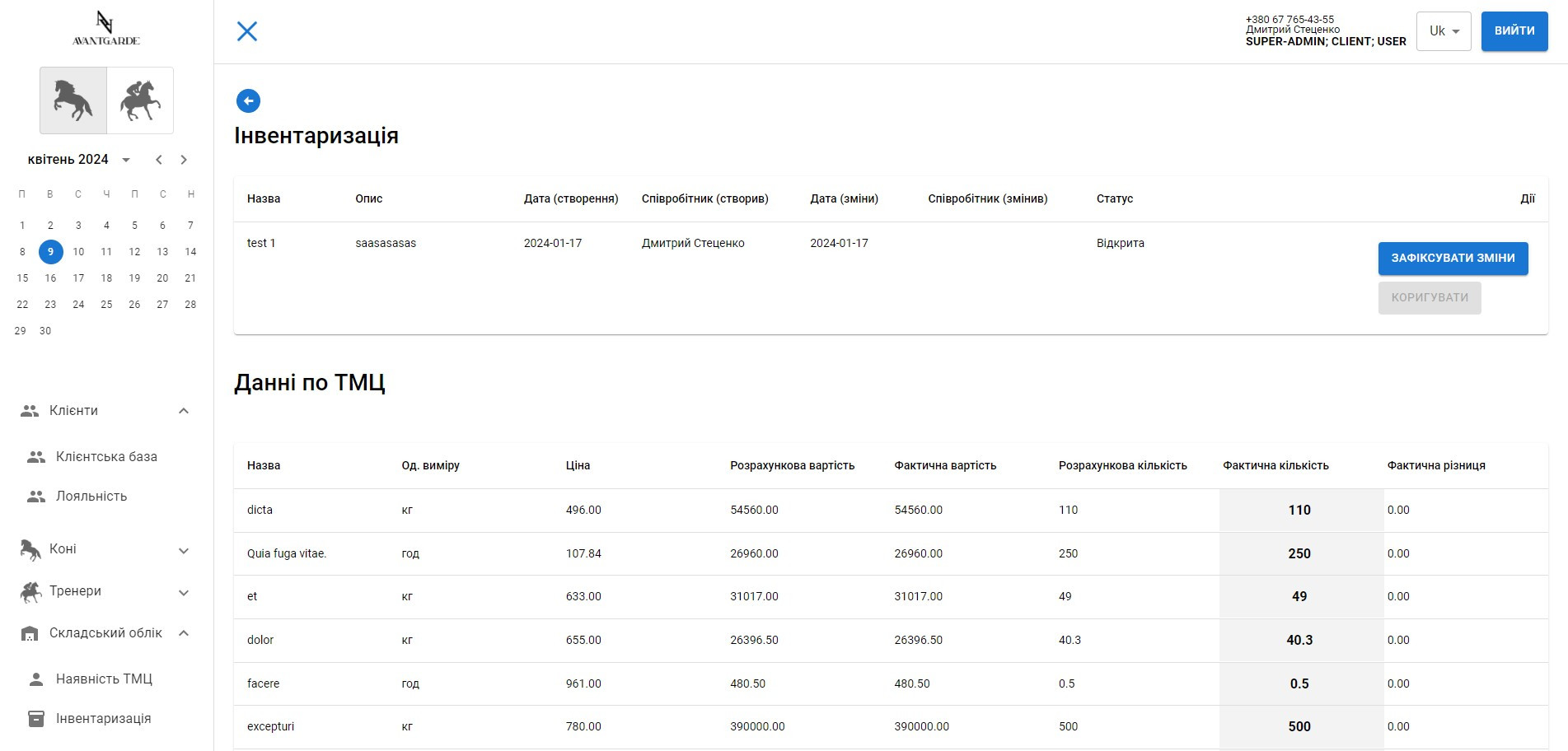 - Implementation of two work processes: booking sessions with a trainer and renting horses;