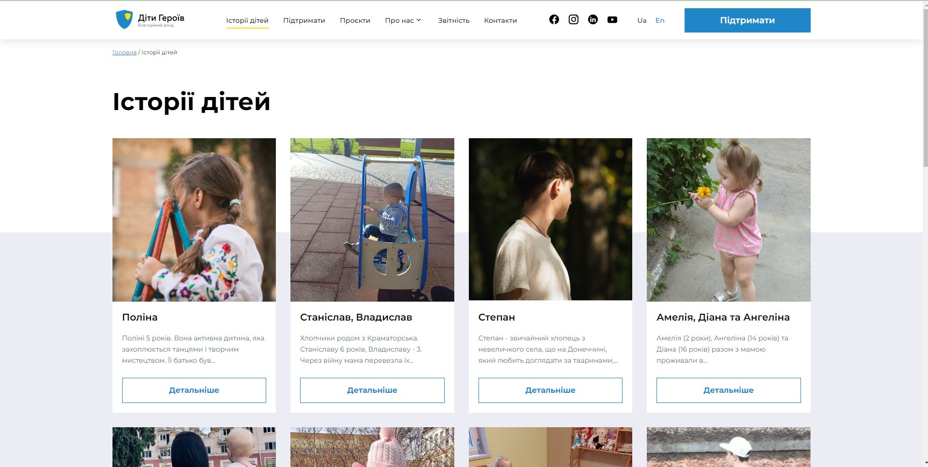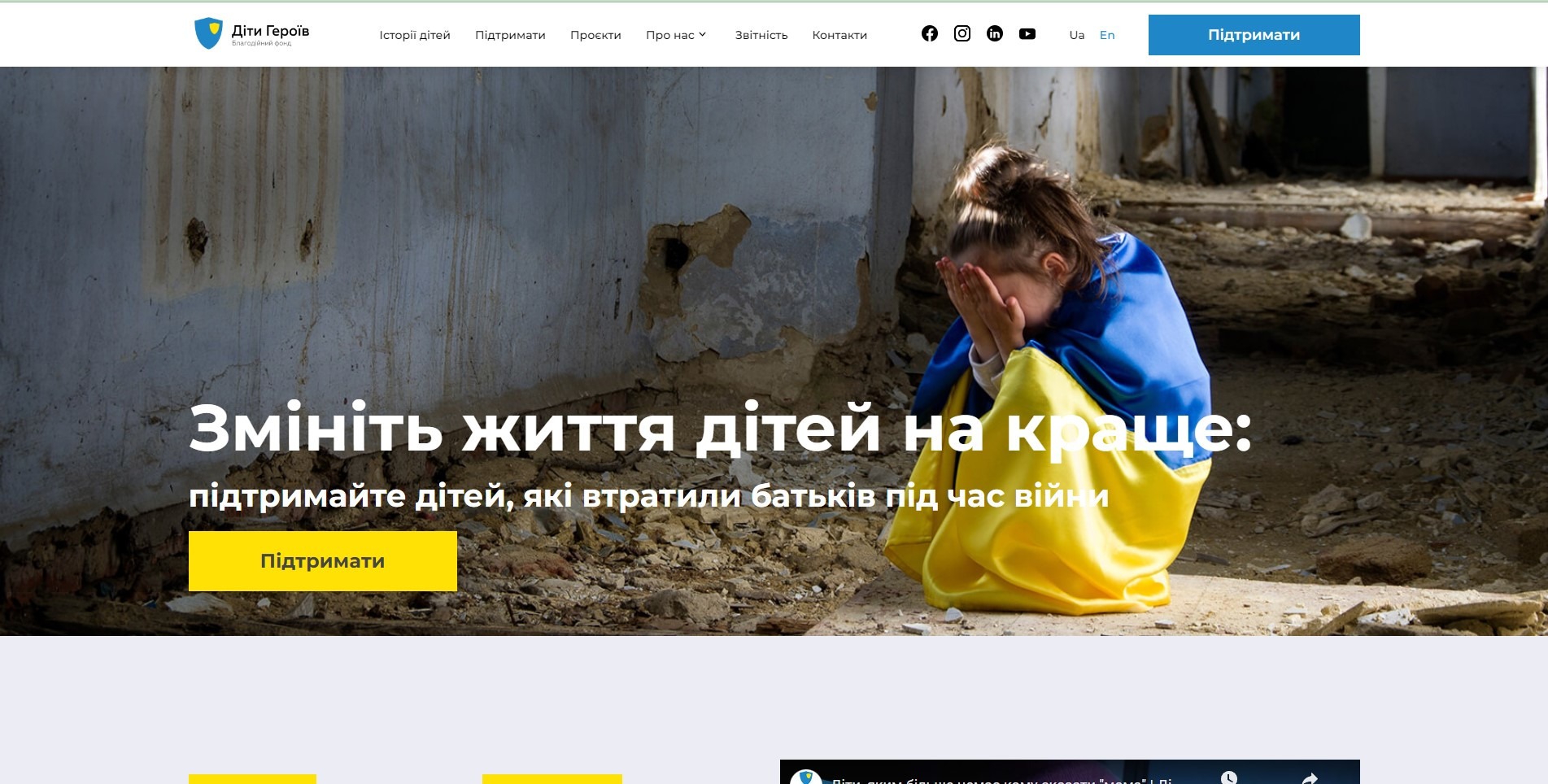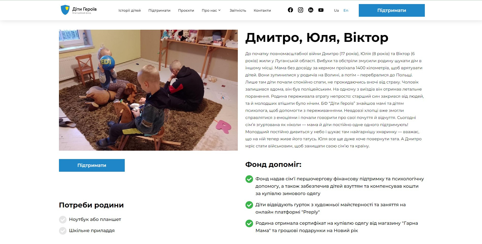 Children of Heroes is a charity foundation that provides long-term assistance to children who lost one or both parents as a result of the Russian war in Ukraine