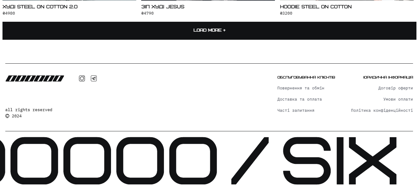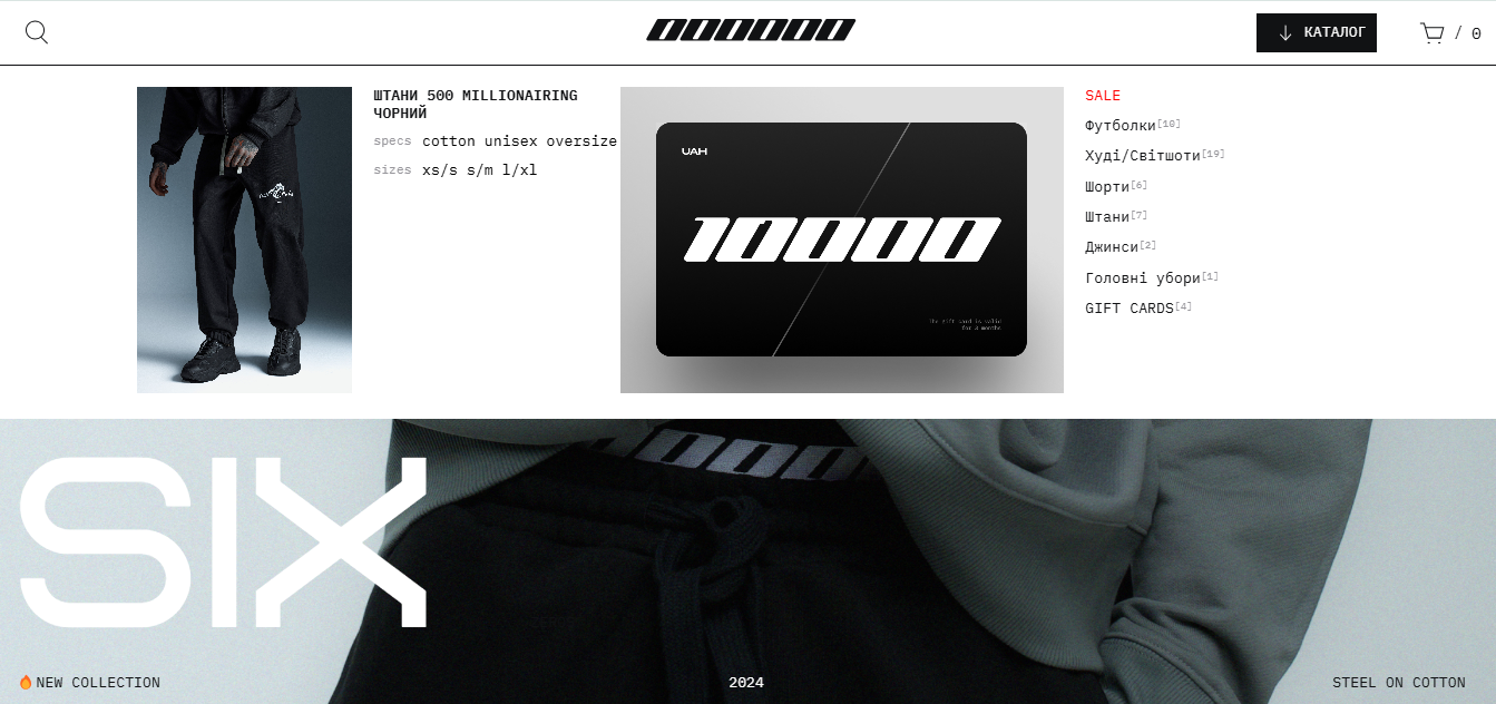 "Six Zeros" is a new and creative fashion brand offering modern trendy clothing for Ukrainian consumers. The e-commerce platform features T-shirts, hoodies, shorts, pants, jeans, and headwear.
