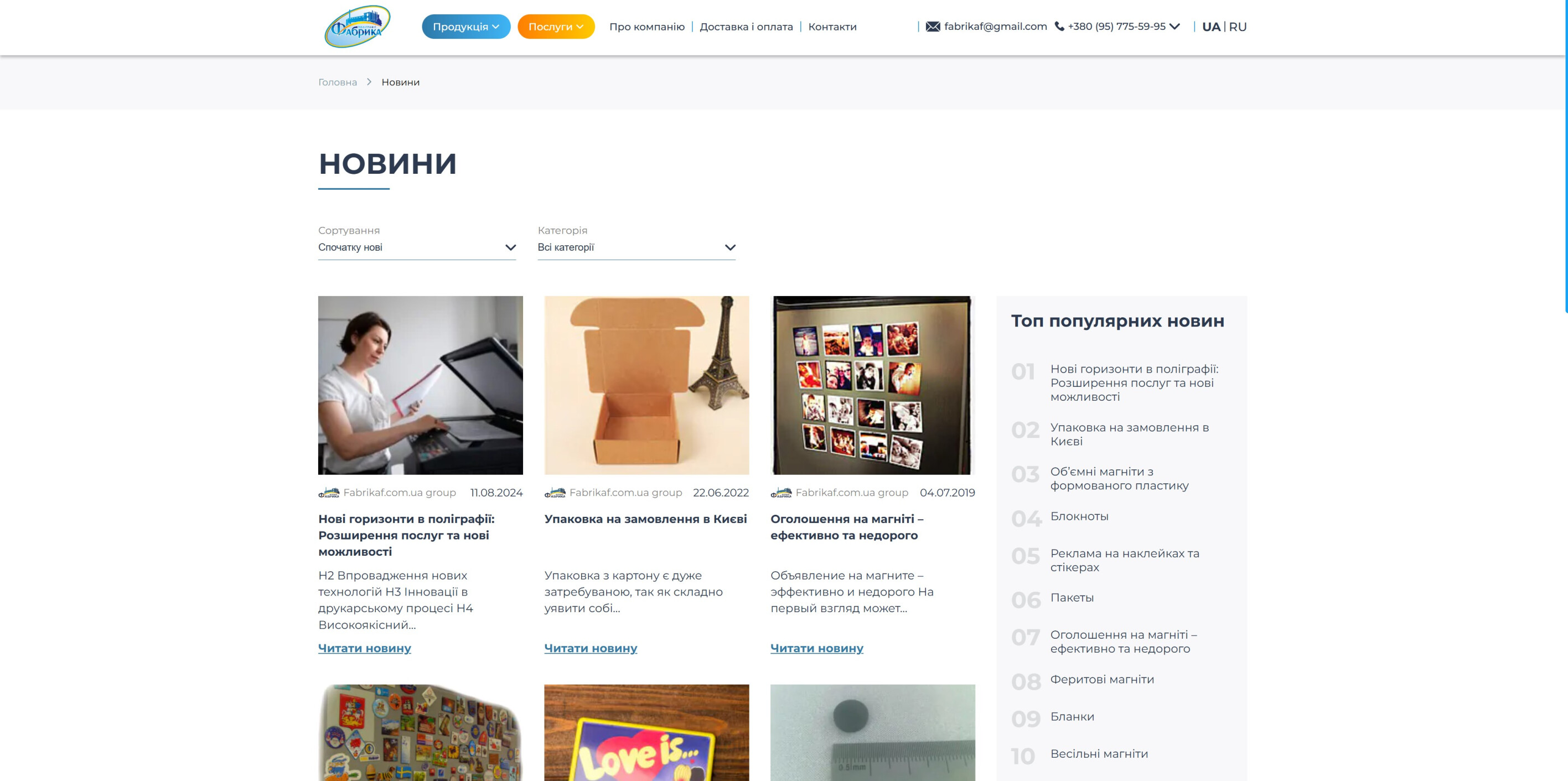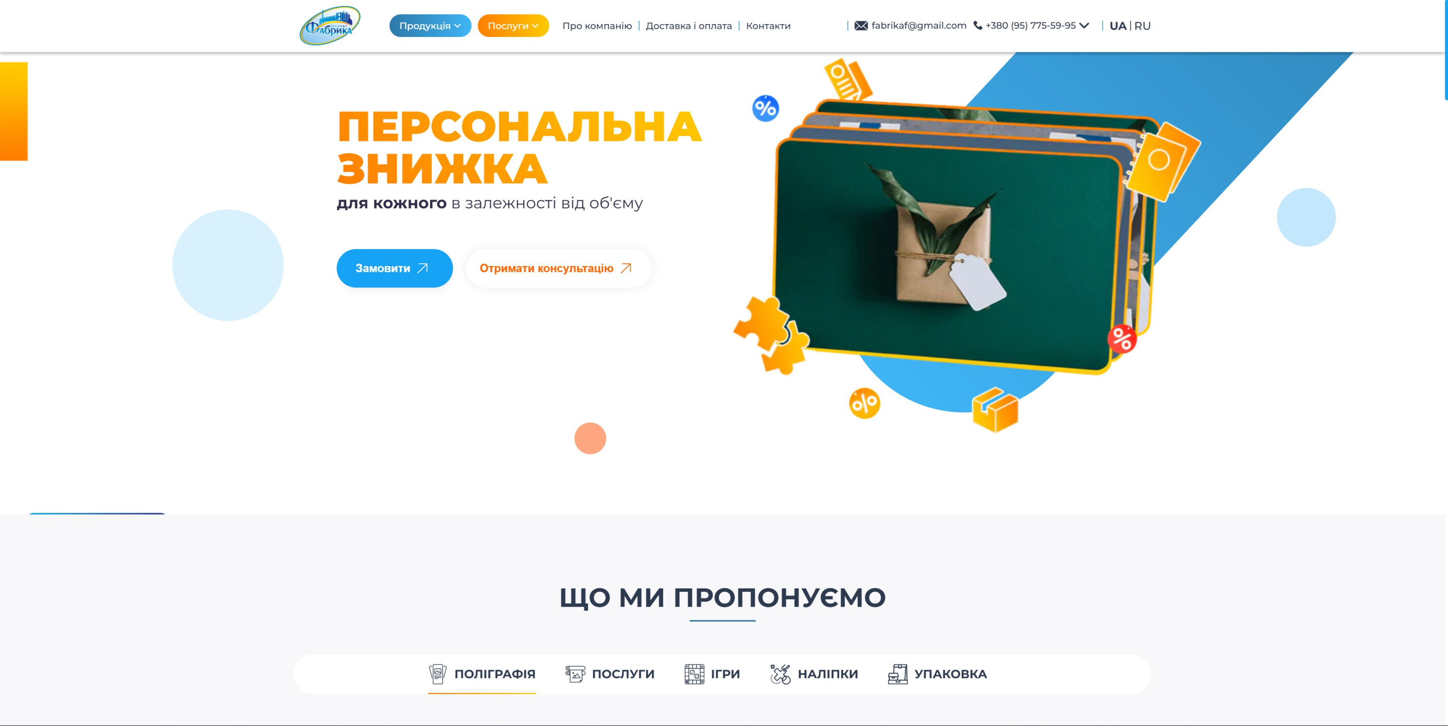 A Ukrainian printing company operating since 2005, specializing in the production of printed materials for both businesses and private clients. The company is distinguished by its high-quality services, confirmed by compliance with international ISO 12647-2 standards, and the use of modern European equipment. It offers nationwide delivery, provides consultations from technologists and designers, and is committed to continuous service improvement. Over the years, it has established itself as a reliable and professional partner in the printing industry.