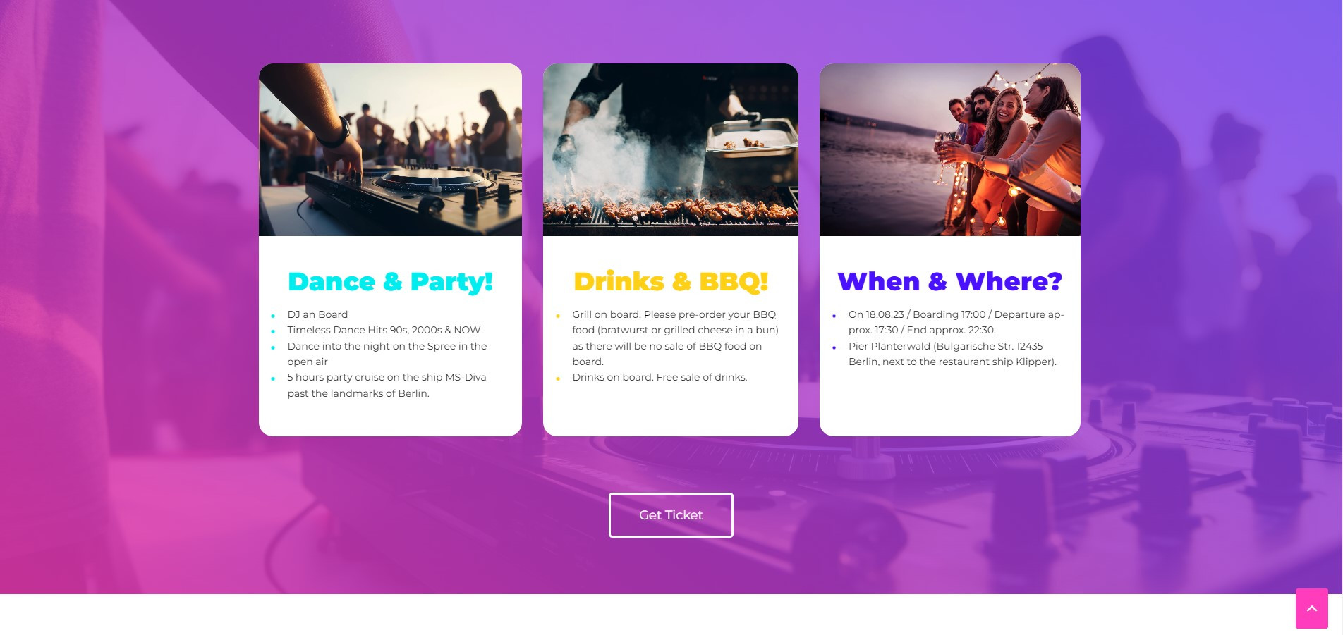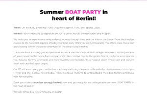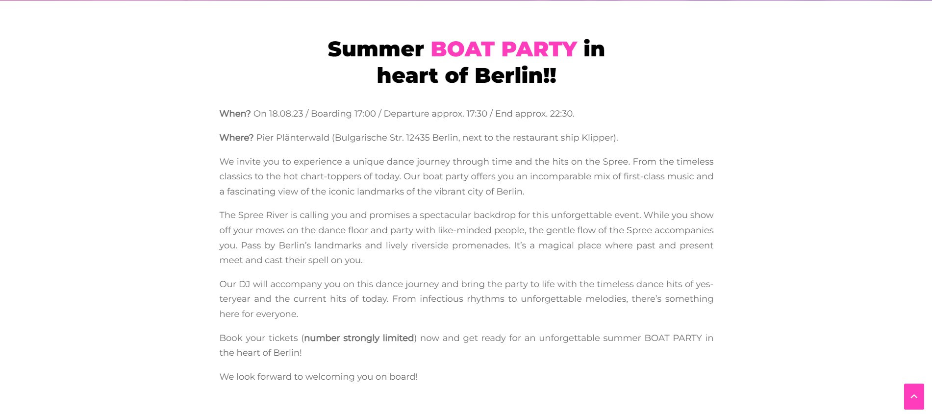 The client is a private company based in Germany, specializing in organizing and hosting parties on ships. We created a landing page for the open-air event on the exciting Spree River in Berlin.